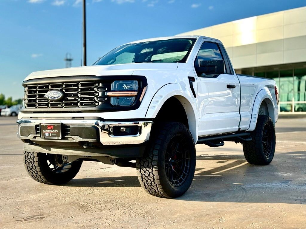 2025 Oxford White Ford F-150 XLT 2D Standard Cab 4WD 5.0L V8 4WD, ABS brakes, Compass, Electronic Stability Control, Heated door mirrors, Illuminated entry, Low tire pressure warning, Remote keyless entry, Traction control.
