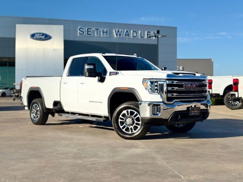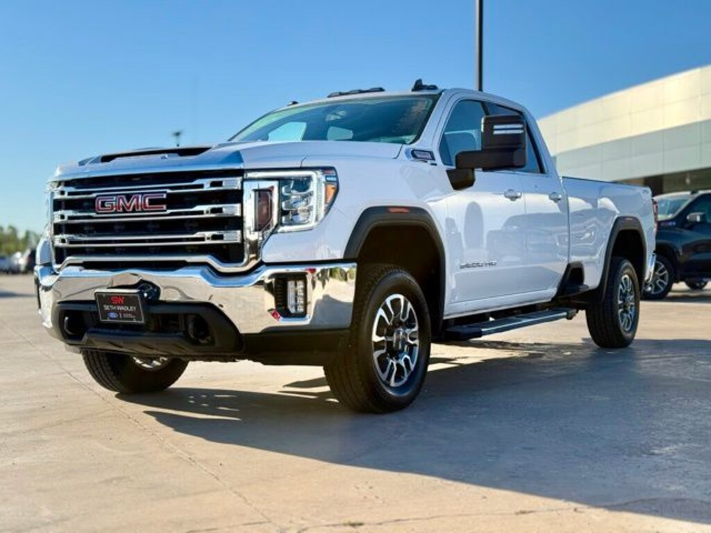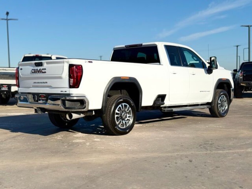 2022 Summit White GMC Sierra 2500HD SLE Double Cab 4WD Duramax 6.6L V8 Turbodiesel This GMC Sierra 2500HD has many features and is well equipped including 405-338-4788, Safety Group, Backup Camera, Active Parking Assist, Navigation Capable, Automatic Headlights, Voice Recognition, Bluetooth Hands-Free, Premium Package, Preferred Equipment Group, Low Miles, Lifetime Window Tint Protection (Available), Ozone & CLO2 Treatment by Premier Auto Care, 10-Speed Automatic, 4WD, Jet Black w/Cloth Seat Trim.
