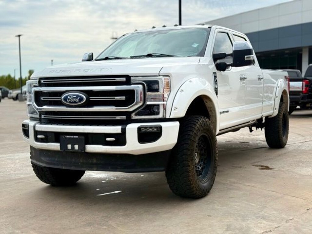 Recent Arrival! 2022 White Ford F-250SD Platinum 4D Crew Cab 4WD Power Stroke 6.7L V8 DI 32V OHV Turbodiesel This Ford F-250SD has many features and is well equipped including 405-338-4788, Clean CarFax, Active Parking Assist, Navigation Capable, Touchscreen Controls, Remote Vehicle Start, Automatic Headlights, Voice Recognition, Bluetooth Hands-Free, Premium Package, Preferred Equipment Group, Center Console, Lifetime Window Tint Protection (Available), 4WD.