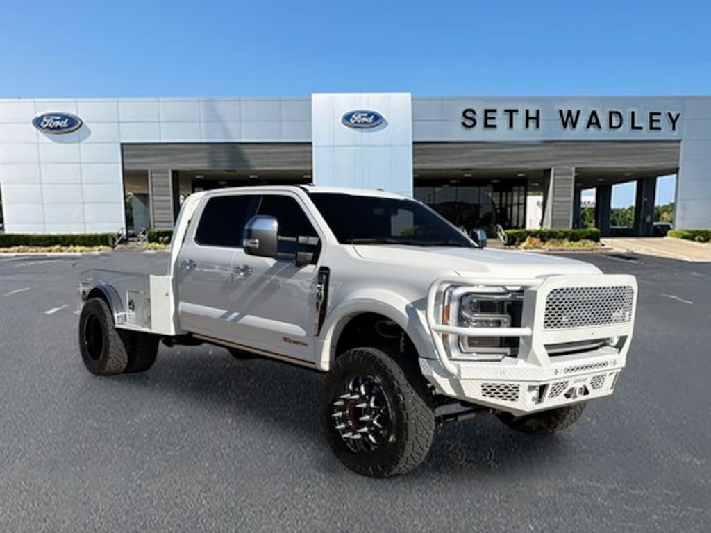 Command attention in this 2023 Ford F-450 Platinum 4x4 Crew Cab VIN 1FT8W4DM8PEC99255 available now at Seth Wadley Ford Lincoln in Pauls Valley, Oklahoma. This custom-built Platinum edition combines Fords highest level of luxury with professional-grade upgrades, including a full suspension lift, oversized all-terrain tires, and premium custom wheels that make this Super Duty a true showpiece of power and refinement.
