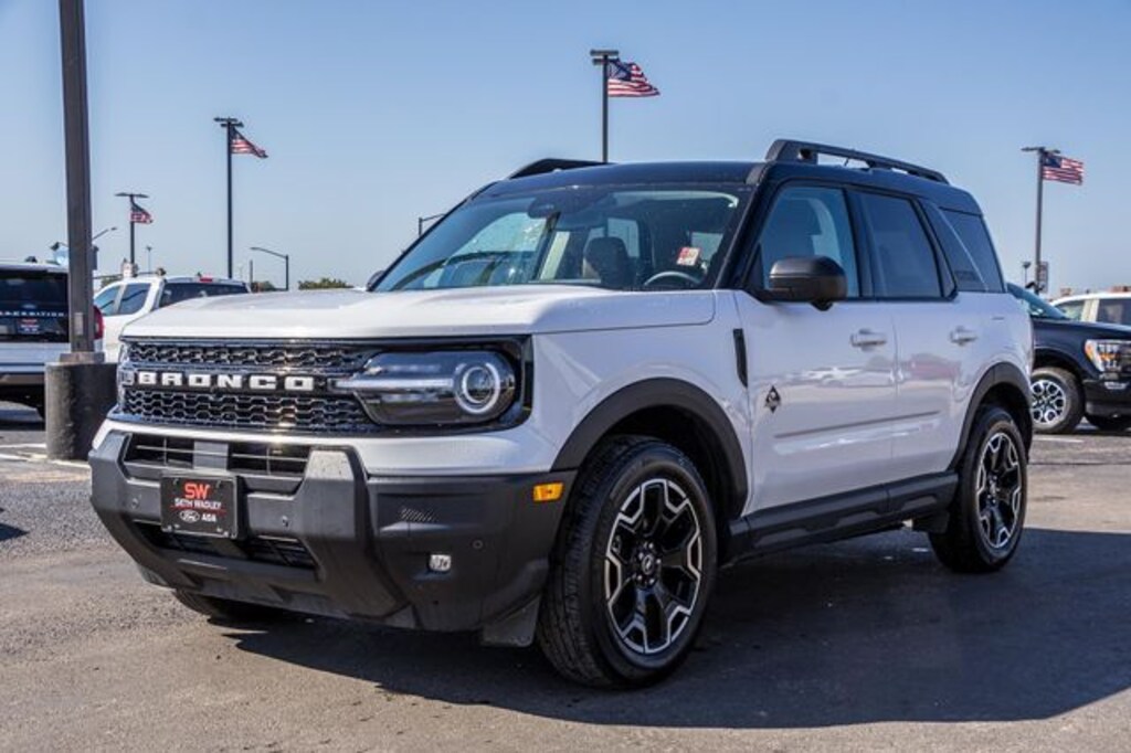 Recent Arrival! 2025 Oxford White Ford Bronco Sport Outer Banks 4D Sport Utility 4WD 1.5L EcoBoost This Ford Bronco Sport has many features and is well equipped including 405-338-4788, Clean CarFax, Active Parking Assist, Navigation Capable, Touchscreen Controls, Remote Vehicle Start, Automatic Headlights, Voice Recognition, Bluetooth Hands-Free, Premium Package, Preferred Equipment Group, Center Console, Lifetime Window Tint Protection (Available).