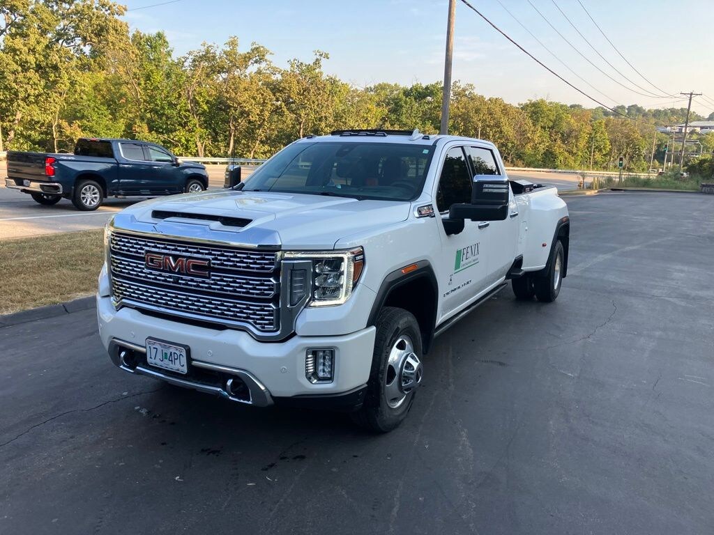 2022 White Frost Tricoat GMC Sierra 3500HD Denali 4D Crew Cab 4WD Duramax 6.6L V8 Turbodiesel This GMC Sierra 3500HD has many features and is well equipped including 405-338-4788, Clean CarFax, Active Parking Assist, Navigation Capable, Touchscreen Controls, Remote Vehicle Start, Automatic Headlights, Voice Recognition, Bluetooth Hands-Free, Premium Package, Preferred Equipment Group, Center Console, Lifetime Window Tint Protection (Available), 10-Speed Automatic, 4WD, Jet Black w/Forge Perforated Leather-Appointed Seat Trim.