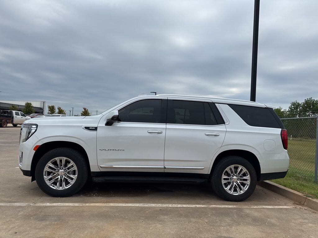 Recent Arrival! 2023 White Frost Tricoat GMC Yukon SLT 4D Sport Utility RWD EcoTec3 5.3L V8 This GMC Yukon has many features and is well equipped including 405-338-4788, Clean CarFax, Active Parking Assist, Navigation Capable, Touchscreen Controls, Remote Vehicle Start, Automatic Headlights, Voice Recognition, Bluetooth Hands-Free, Premium Package, Preferred Equipment Group, Center Console, Lifetime Window Tint Protection (Available).