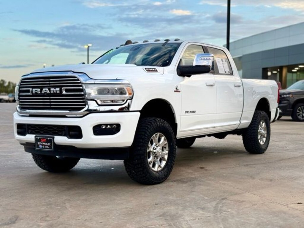 2023 Bright White Clearcoat Ram 2500 Laramie 4D Crew Cab 4WD Cummins 6.7L I6 Turbodiesel This Ram 2500 has many features and is well equipped including 405-338-4788, Clean CarFax, Certified, COLLISION AVOIDANCE SYSTEM, COLLISION WARNING SYSTEM, Safety Group, Backup Camera, Blind-Spot Monitors, Active Parking Assist, Leather, Heated and Cooled Seats, Heated Steering Wheel, Heated Seats, Apple & Android Car Play, Navigation Capable, Navigation System, Touchscreen Controls, Remote Vehicle Start, Keyless Access with Push Button Start, Drowsiness Alert, Automatic Headlights, Apple CarPlay, Android Auto, Voice Recognition, Bluetooth Hands-Free, 6.7L Cummins, Diesel, 5th Wheel Hitch Prep Kit, Off Road Package, All Terrain Package, 4WD, All-Wheel Drive, AWD, 3/4 Ton, 2500, Limited, Premium Package, Laramie, Preferred Equipment Group, Chrome Appearance Package, Center Console, Bedliner, Running Boards, Trailer Tow Package, Low Miles, Lifetime Bedliner Protection (Available), Lifetime Window Tint Protection (Available), Ozone & CLO2 Treatment by Premier Auto Care, 12" Touchscreen Display, 2nd Row In Floor Storage Bins, 4G LTE Wi-Fi Hot Spot, Adaptive Cruise Control w/Stop, Adaptive Steering System, Alexa Built-In, Apple CarPlay, Auto Adjust In Reverse Exterior Mirrors, Auto Dim Exterior Mirror, Auto High Beam Headlamp Control, Auto Power-Folding Mirrors, Auto-Dimming Exterior Passenger Mirror, Blind Spot & Cross Path Detection, Chrome Exterior Mirrors, Connected Travel & Traffic Services, Connectivity - US/Canada, CTR Stop Lamp w/Cargo View Camera, Disassociated Touchscreen Display, Exterior Mirrors Courtesy Lamps, Exterior Mirrors w/Heating Element, Exterior Mirrors w/Memory, Exterior Mirrors w/Supplemental Signals, Foam Bottle Insert (Door Trim Panel), For Details, Visit DriveUconnect.com, For More Info, Call 800-643-2112, Forward & Reverse Utility Lights, Front LED Fog Lamps, Front Performance Tuned Shock Absorbers, Full Speed Forward Collision Warning Plus, Global Telematics Box Module (TBM), Google Android Auto, GPS Antenna Input, GPS Navigation, HD Radio, Hill Descent Control, Integrated Voice Command w/Bluetooth, Lane Keep Assist, Laramie Level 1 Equipment Group, LED Reflector Headlamps, Mirror Running Lights, Navigation System, Off Road Package, Off-Road Information Pages, ParkSense Front/Rear Park Assist System, Power Adjust Mirrors, Power Adjustable Convex Aux Mirrors, Power Adjustable Pedals w/Memory, Power Heated Fold Telescopic Mirrors w/Memory, Power Telescoping Mirrors, Quick Order Package 2HH Laramie, Radio: Uconnect 5 Nav w/12.0" Display, Radio/Driver Seat/Mirrors/Pedals Memory, Rain Sensitive Windshield Wipers, Rear Performance Tuned Shock Absorbers, Rear Power Sliding Window, Rear Window Defroster, Remote Tailgate Release, Safety Group, Selectable Tire Fill Alert, SiriusXM Radio Service, SiriusXM w/360L, Surround View Camera System, Tow Hooks, Towing Technology Group, Trailer Reverse Guidance, Trailer Tow Pages.